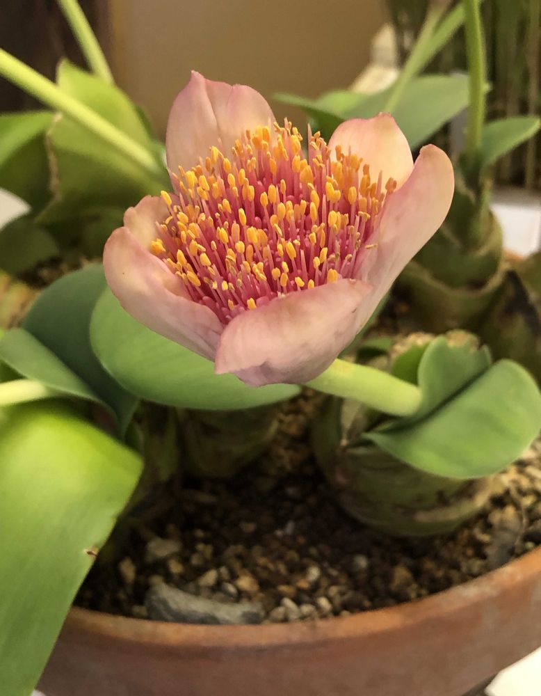 漢字で「眉刷毛万年青」、別名「ハエマンサス」です。🌞✌️