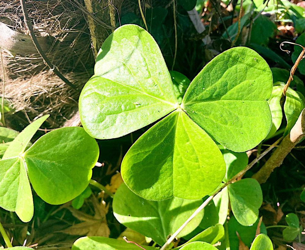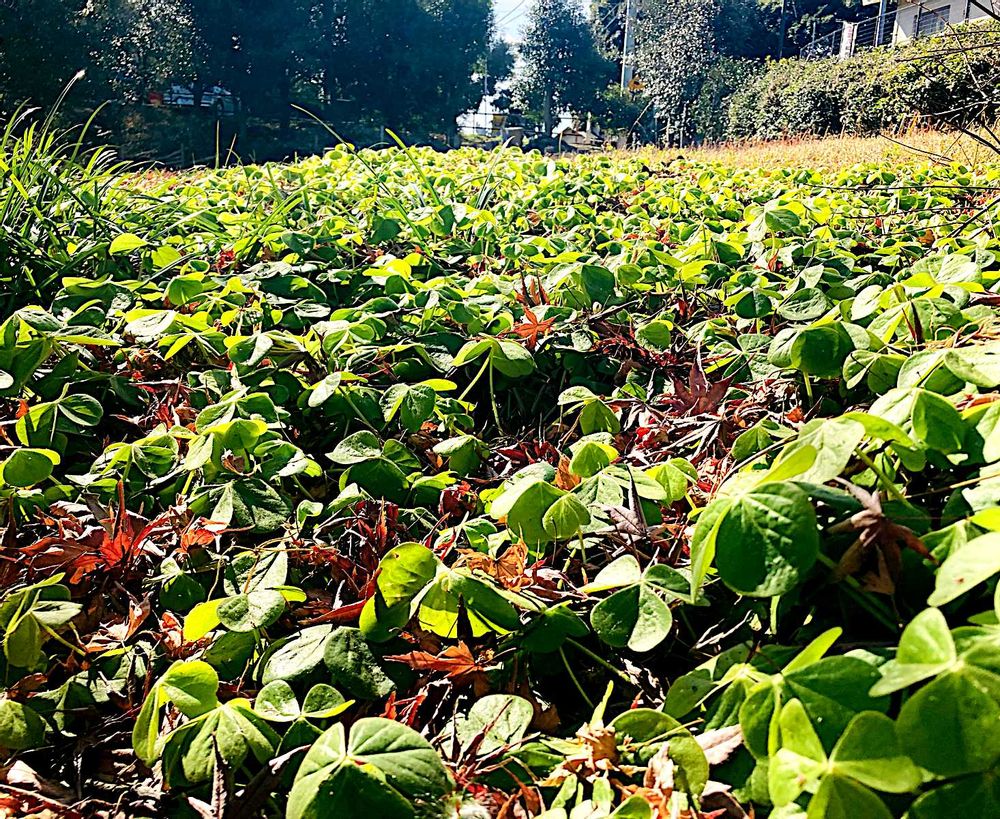 原っぱに群生していた、大きな「片喰(カタバミ)」の葉で、おはようございます✨☘️😊☘️✨