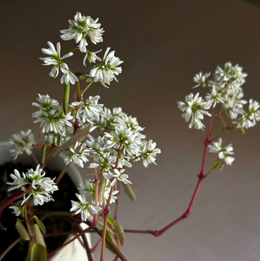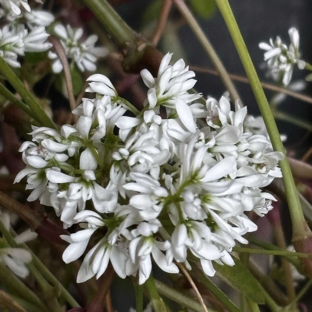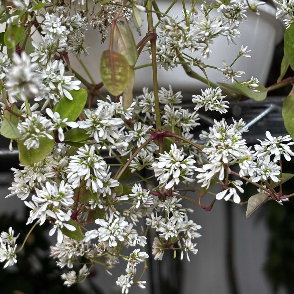 一つ挿し穂して小さなポットに植えてみたのも茎が伸びて垂れ下がった状態で花がたくさん咲いてる。