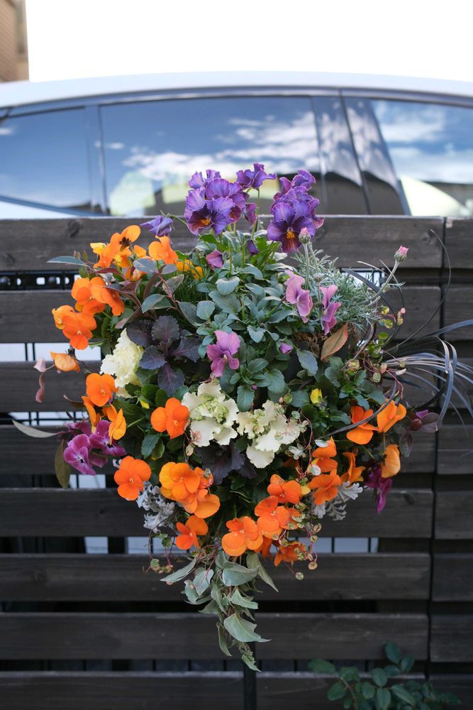沢山貰ったパンジー使ってハンギングバスケット作りました