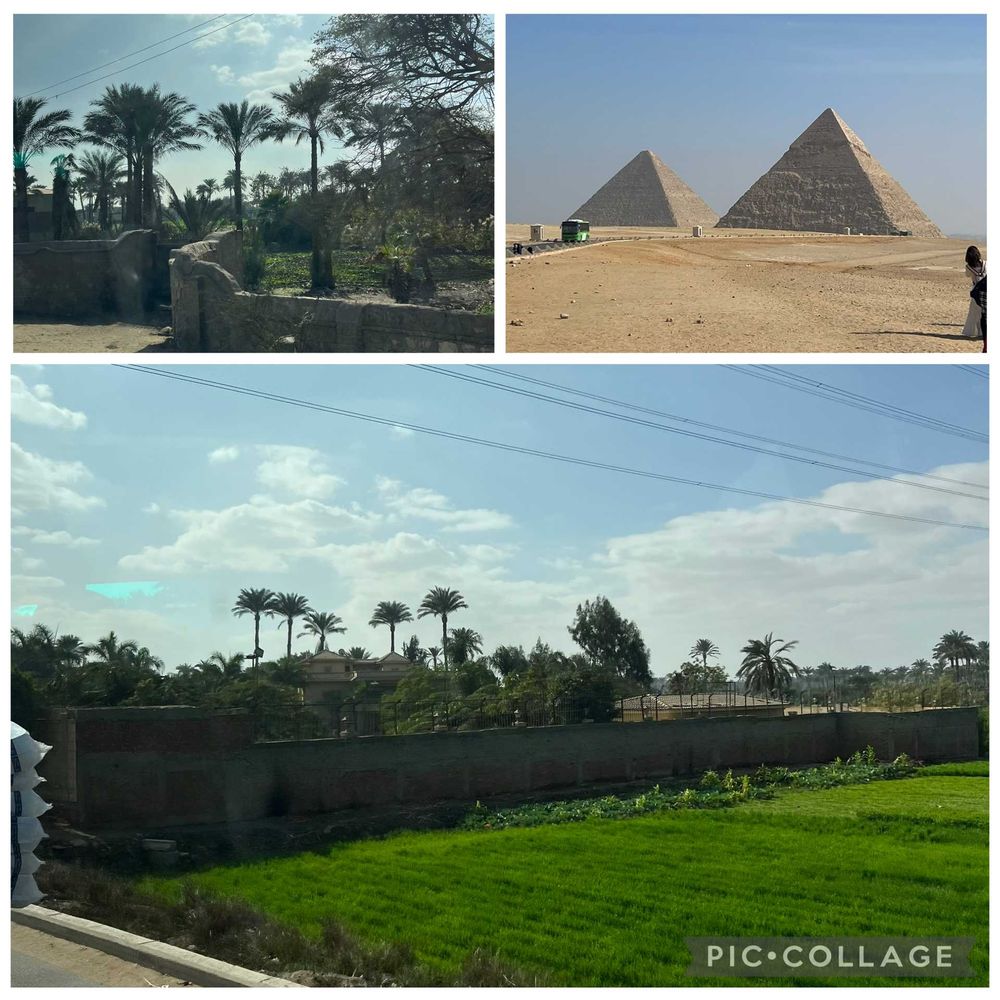 ①エジプトは黄土色の街だけど、意外と緑があったりして驚きました🫢ナイル川から引いた田んぼだとか…