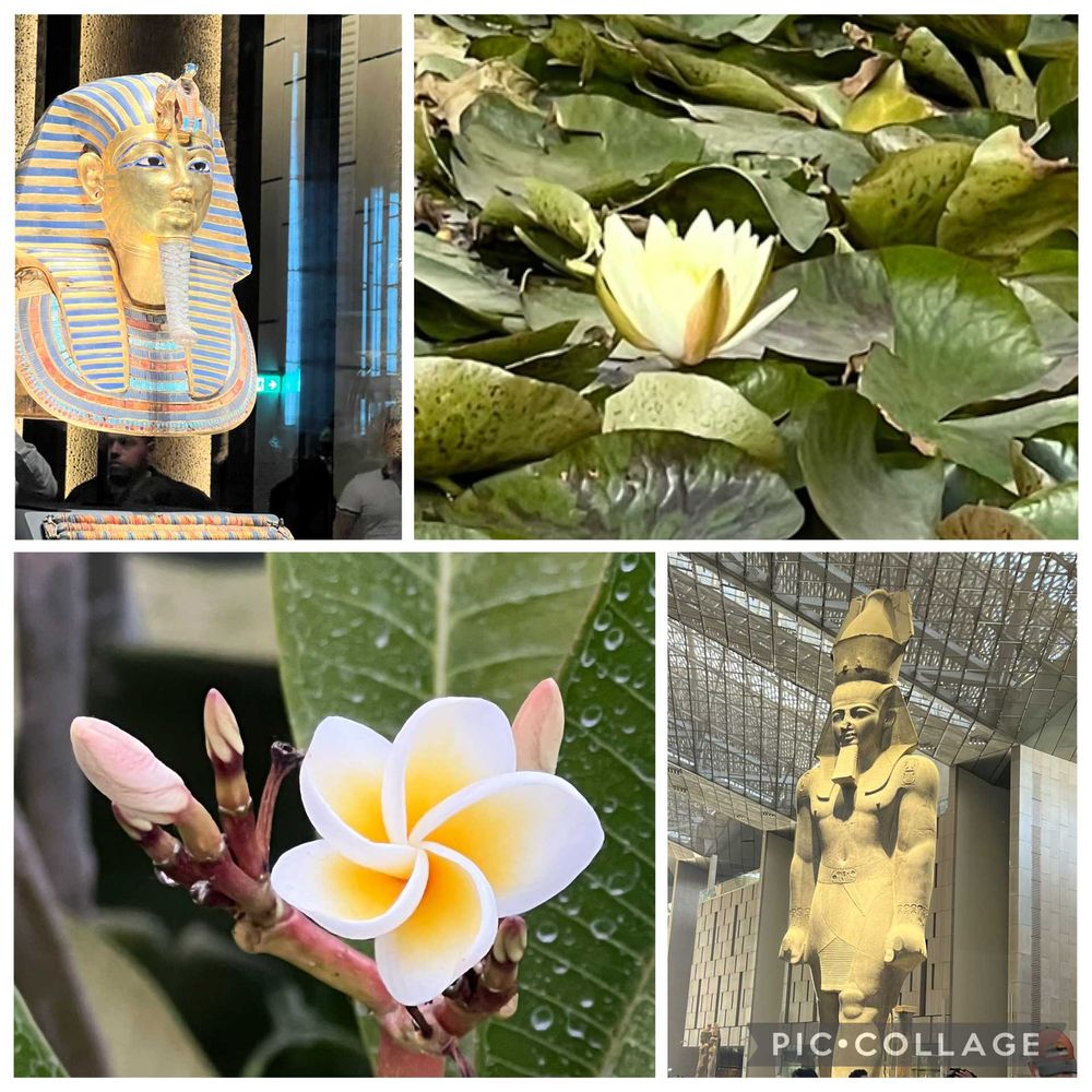②↗️はハスのお花、エジプトの国花です ↙️は大きなプルメリア、真冬でも大きなお花を咲かせていました