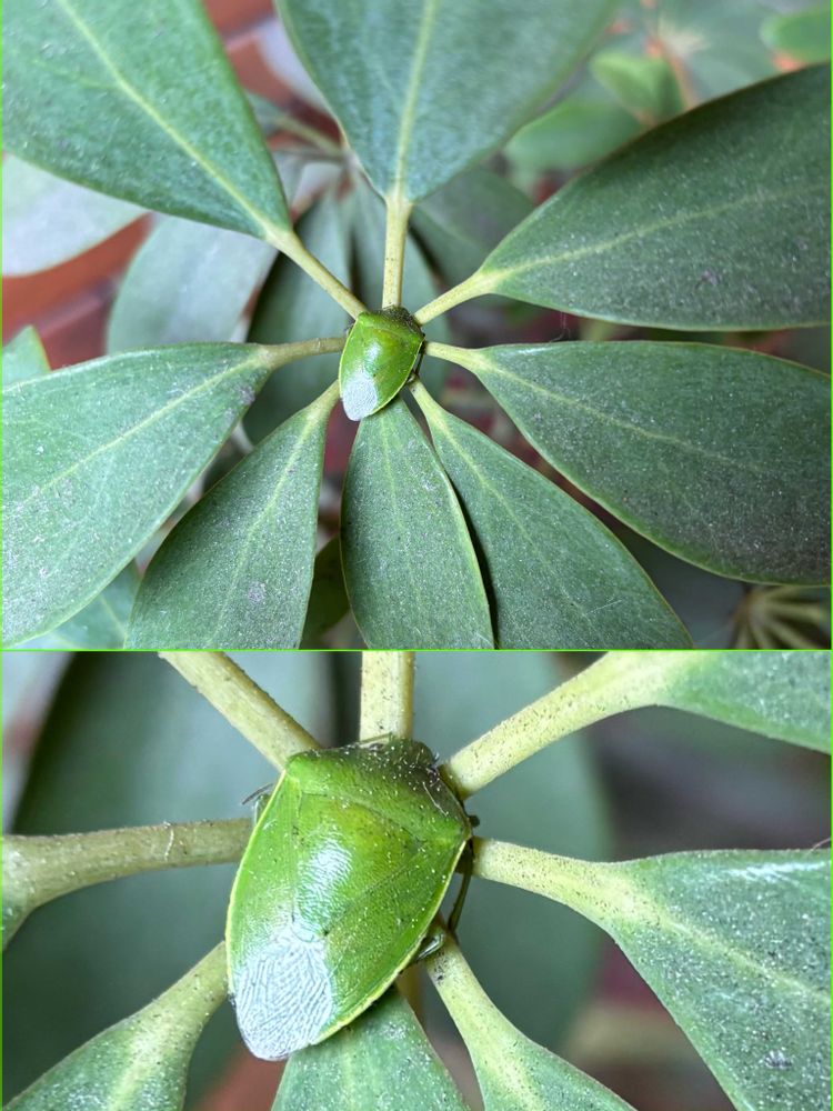 ④⚠️てっぺんの葉っぱに冬眠中のカメムシさん🪲