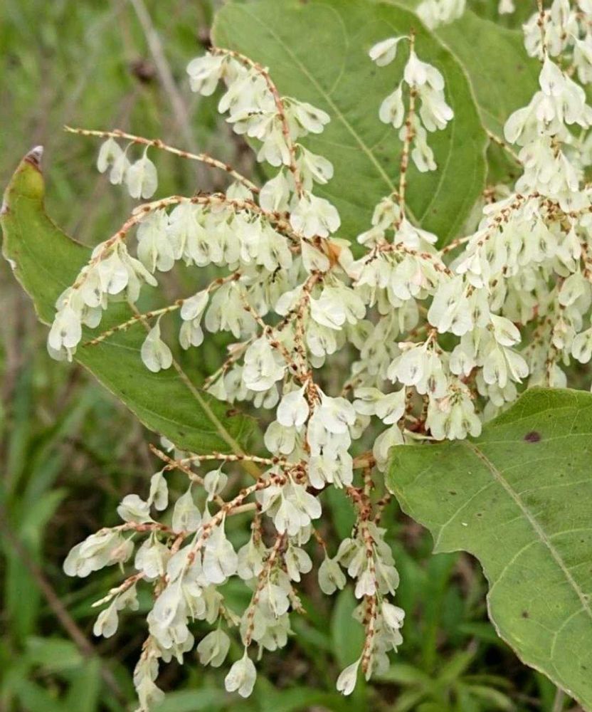タデ科ソバカズラ属の多年草。山野のいたるところに生える。根茎を横に長くのばし、新しい苗を出す。茎は太く、中空で、はじめは紅紫色の斑点がある。葉は互生し、長さ6~15㎝の卵形~広卵形で先は急に尖る。托葉鞘は長さ4~6㎜で早く落ちる。花期は7~10月。葉腋から枝を出し、その先に小さな花を多数つける。雌雄異株。花被は白色~紅色で5裂する。雄花には雄しべが8個あり、雌しべはごく小さい。雌花には3個の花柱があり、雄しべはごく小さい。花のあと雌花の外側の花被片3個は翼状に張りだし、痩果を包む。痩果は3稜形、両端は尖り暗褐色。
