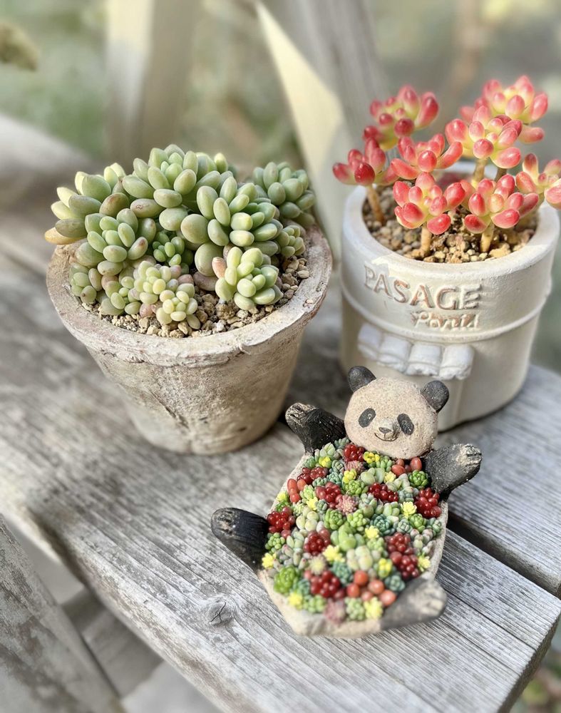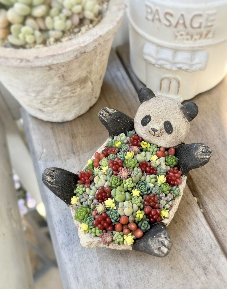 今年のパンダさんは なるべく小さな多肉を集めてちまちましてみたよ😊