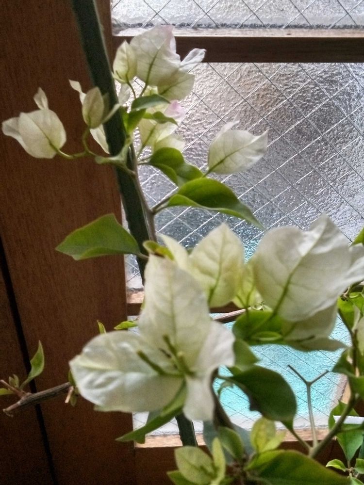 ③寒い玄関の中で ピンクのブーゲンビリアが 色付かないままで 頑張ってじっと身を潜めています