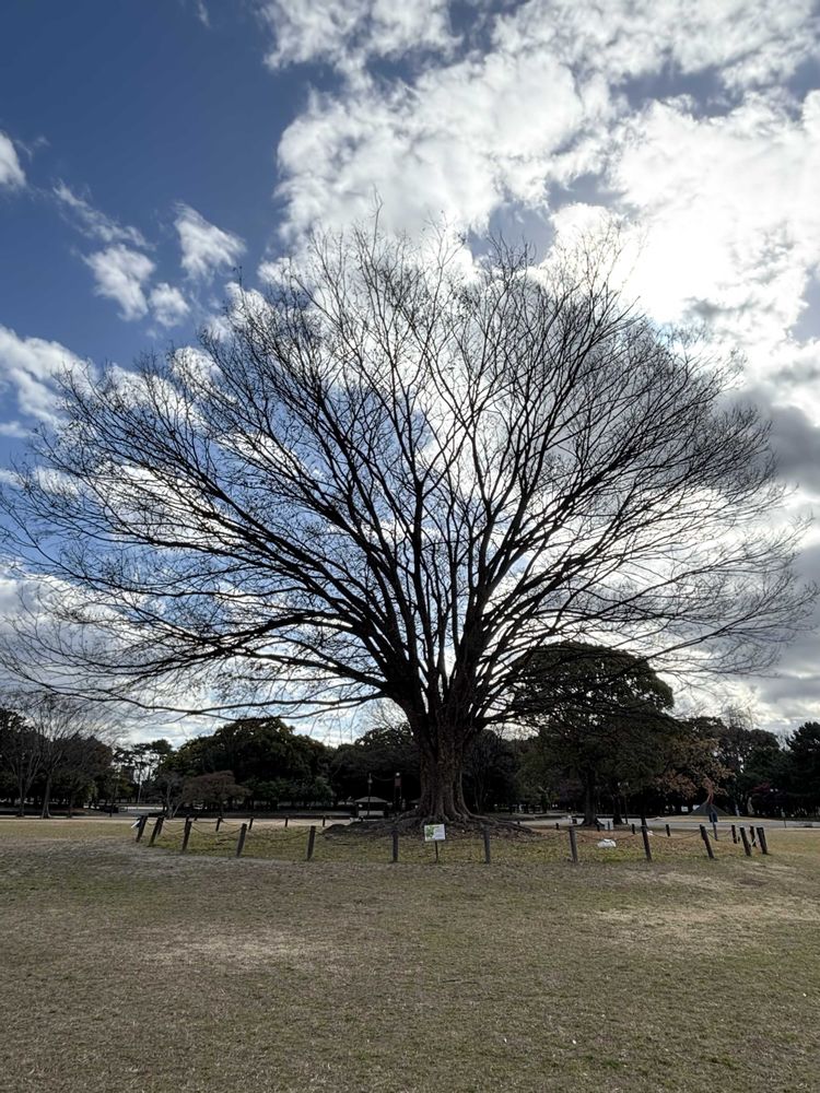 公園の広〜い芝生の真ん中に立つ、おおお〜〜きなケヤキ