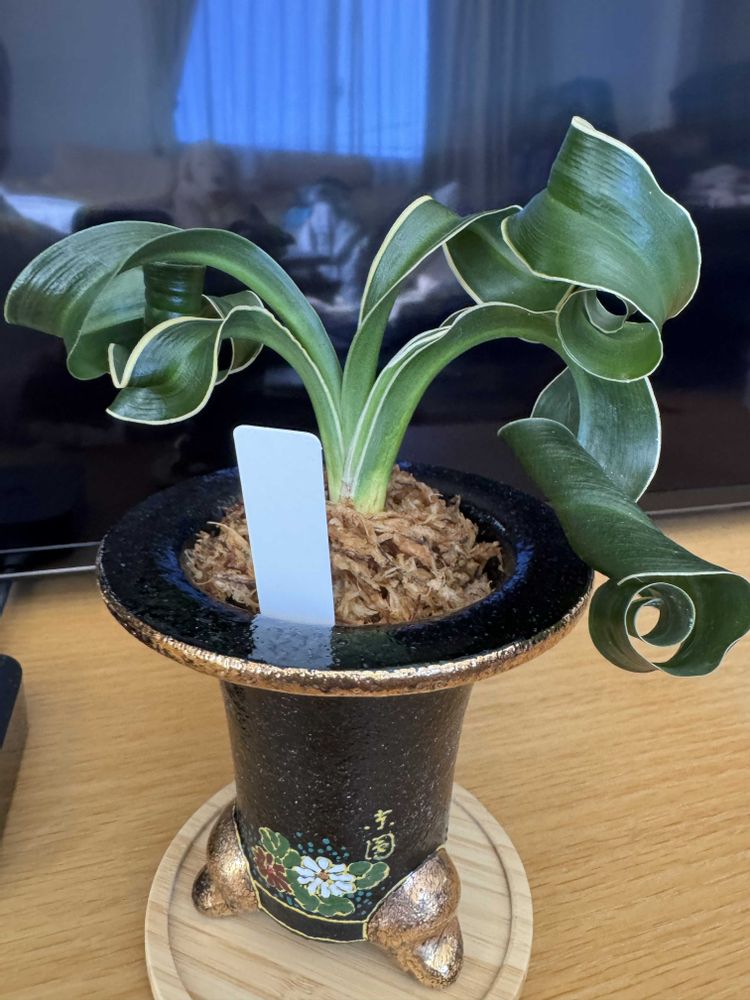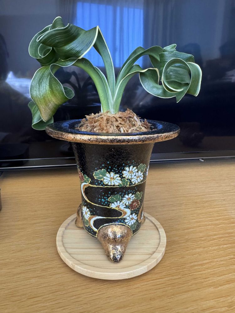 この万年青と鉢は別々に購入したものです。初の万年青の育成なので、これまで経験してきた知識を活かして植えてみました。ハズ!^ ^