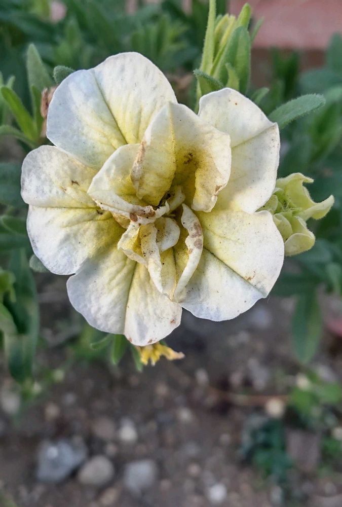 ⑤ 庭のカリブラコアが、寒いのに一輪咲いています🌼
