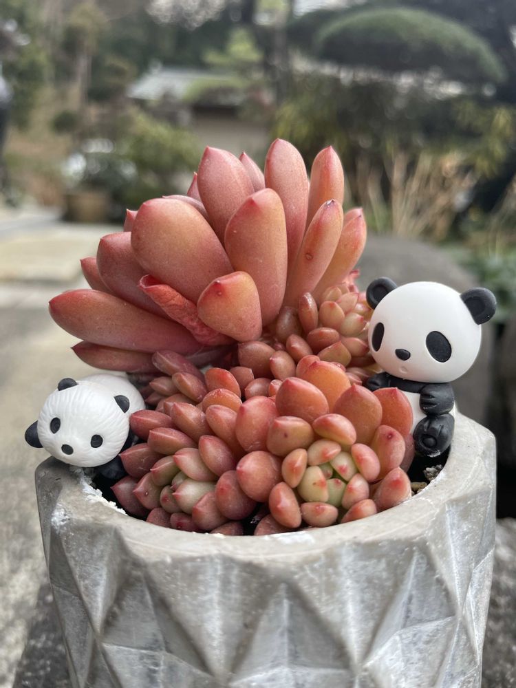 🐼が鉢のふちに沿って乗ってるの可愛い😍✨