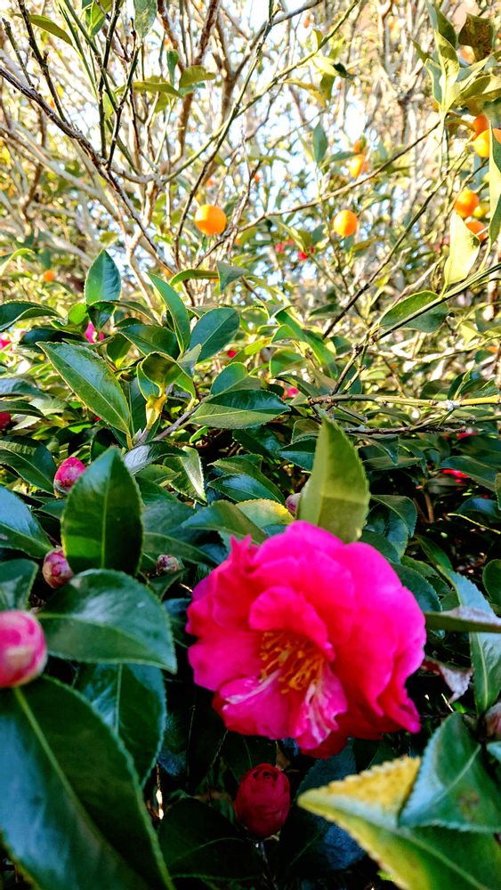3️⃣山茶花と金柑のコラボ!