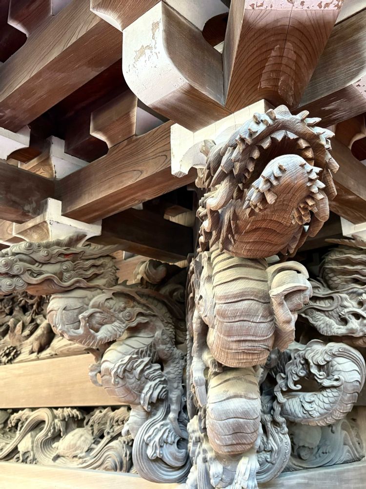 初めて建物の中に入り、精緻な外部の木工の彫刻ギャラリーや日本庭園を見学