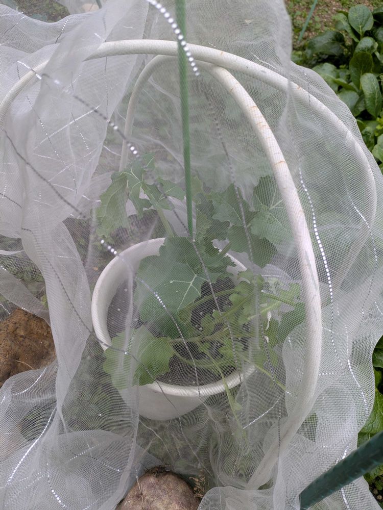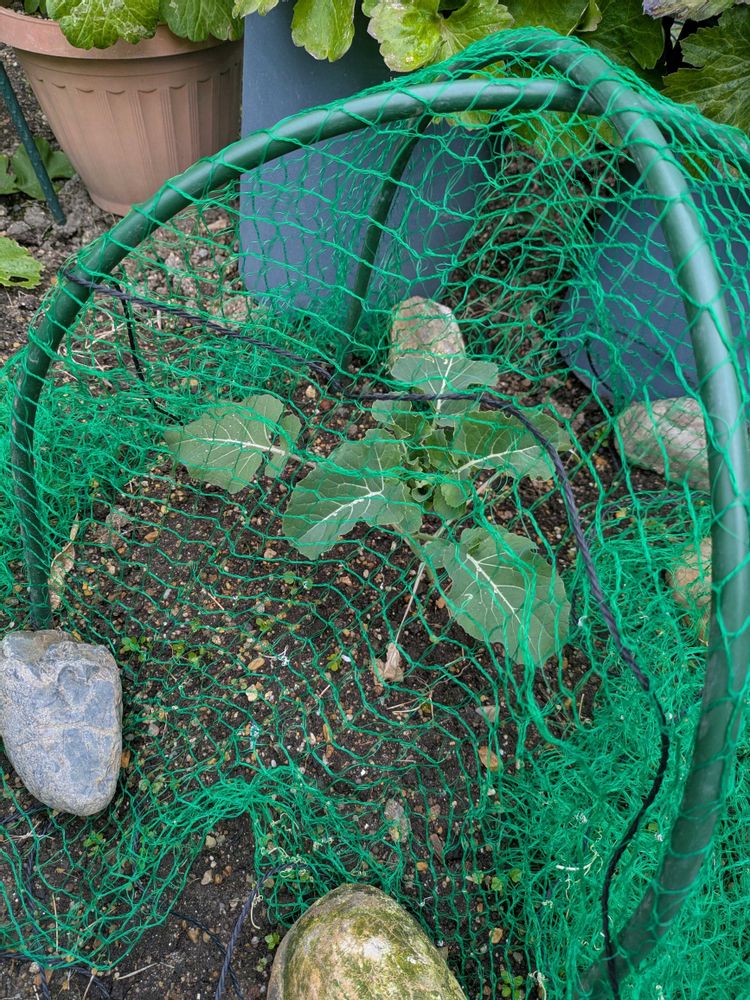 植え替えた野菜は、早速ヒヨドリに食べられたから、ほかのブロッコリーみたいにネットをかけました。