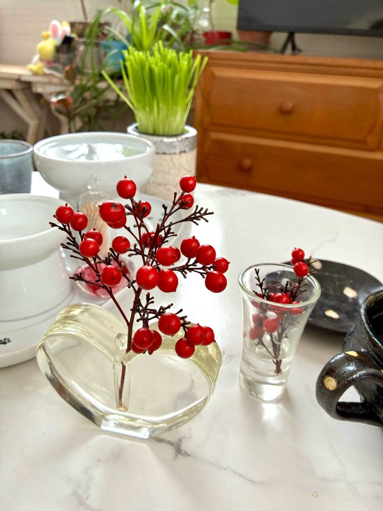 3️⃣ 雪の重みで折れた南天の枝の実🔴