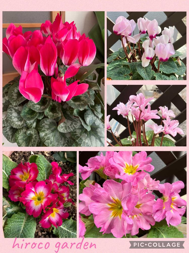 ピンクのシクラメンとジュリアンのコラージュ、とっても可愛いです😍💕
