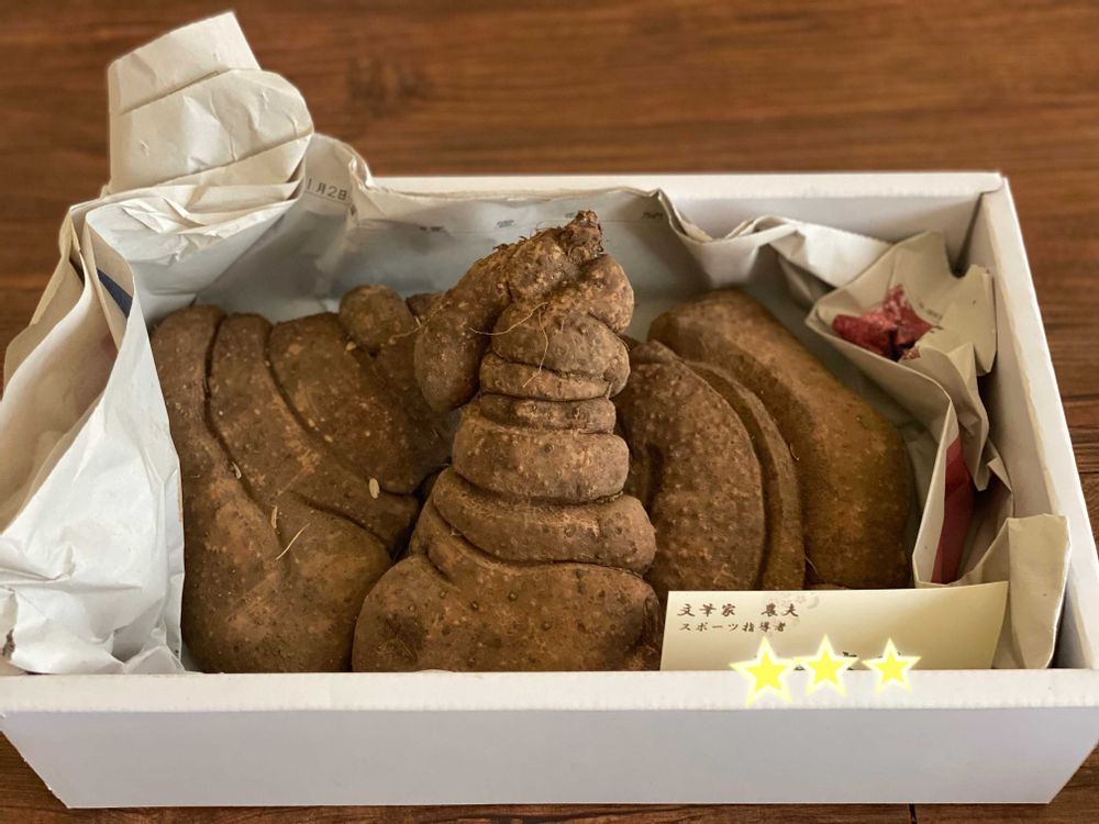 ②今度、斜め前🏠に引っ越して来られる方から、ご挨拶にと頂いた手作りの大和芋😋