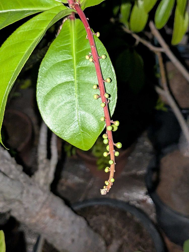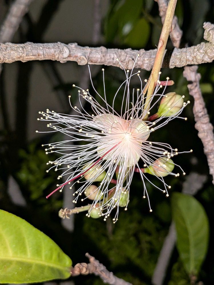 今夜もサガリバナが一つだけ甘い香りを漂わせながら咲いています。しかし蕾の残りが少なくなったら膨らみがゆっくりになり1回で咲く花の量が少なくなりました。そして隣の花序が12cmまで伸びて止まりましたが、こちらが終われば再び動き始めると思います!