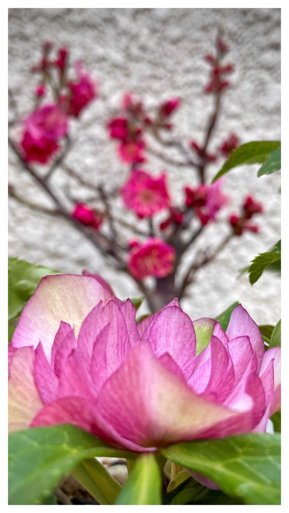 クリスマスローズと紅梅