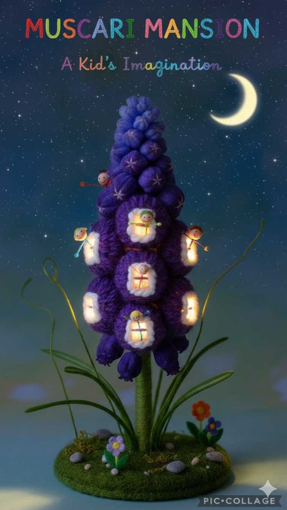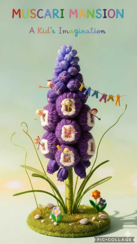 ムスカリの昼と夜のマンション💜💜💜可愛いですね