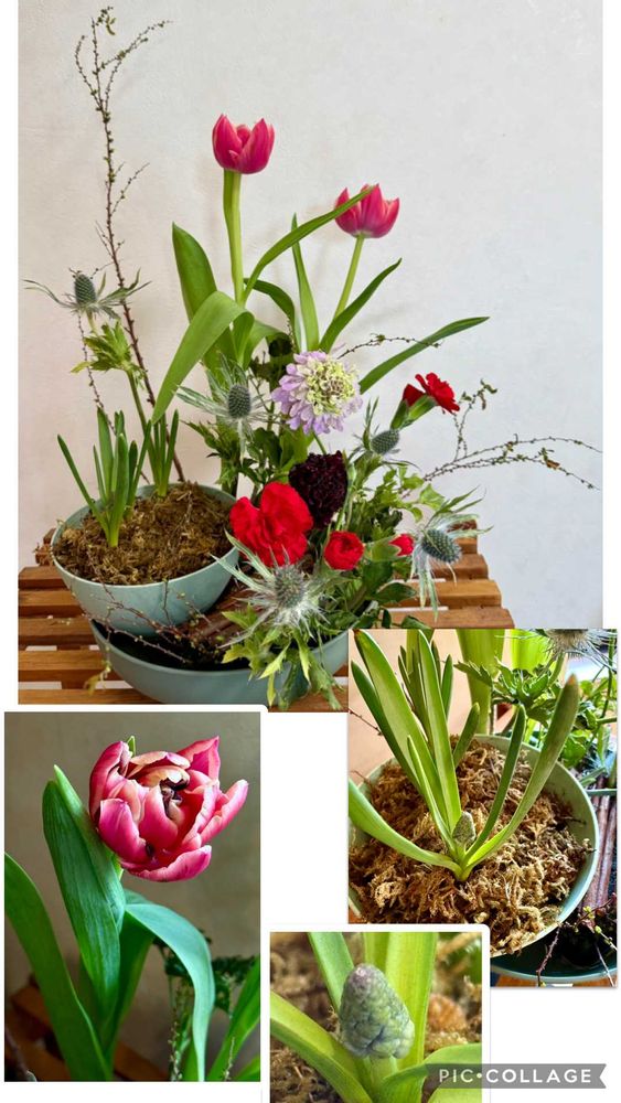 今回は春を思わせるお花とムスカリの球根を使うというので…これにしました💗