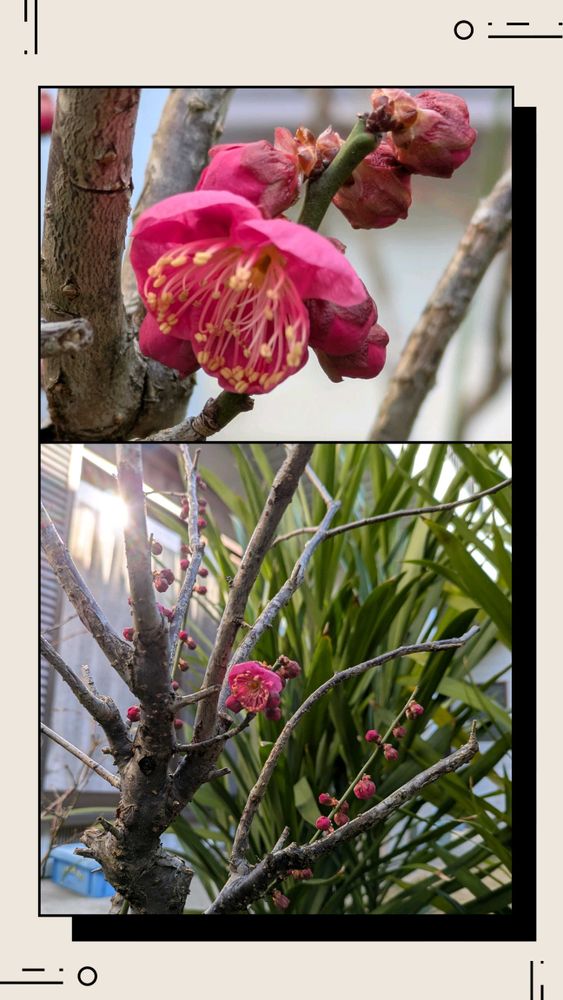 なこ。さんのボケ,紅梅,ハイビスカス アドニスオレンジの投稿画像