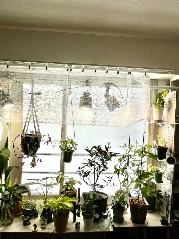 今はまだこのスペースで済んでいますが、この先、成長していった時のことや店で欲しい植物をみつけてしまった時の事を考えると悩ましいです