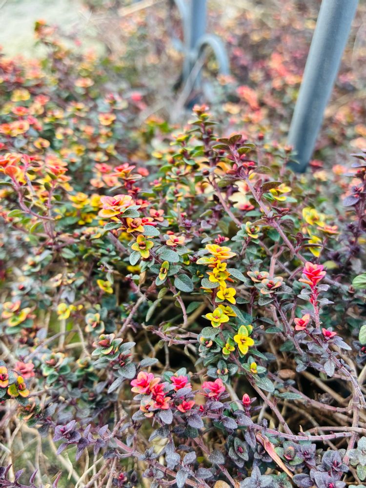うちのタイムは紅葉ではなく一部茶色く枯れてます。種類で差があるんだね。