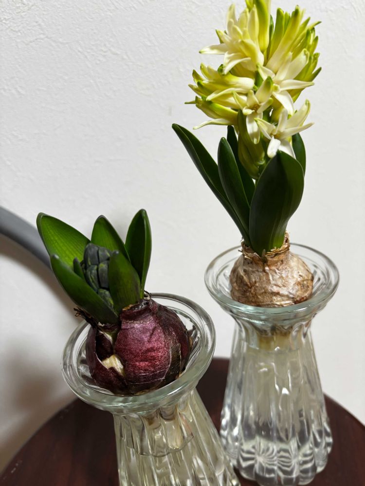 ヒヤシンス🪻急に花開きました 今年は3色入りを🤍🩷💜