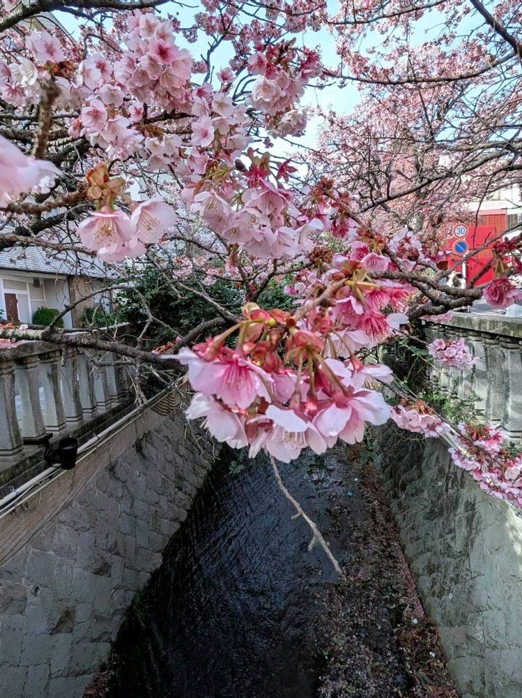 伊豆の熱海温泉街を流れる川沿いの桜
