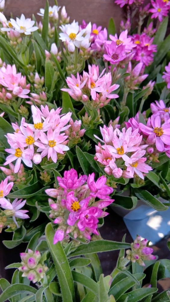 カサカサとしたドライフラワーかワックスペーパーのような質感のお花 ヘリクリサム ローズビューティです。