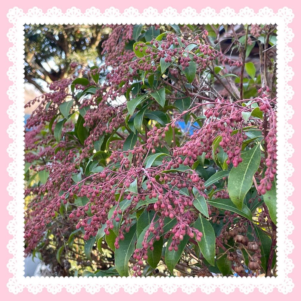 ピンク🩷のアセビの蕾は、家のアセビと同じようです。お花が見られるのは、もう少し、暖かくなってからですね〜