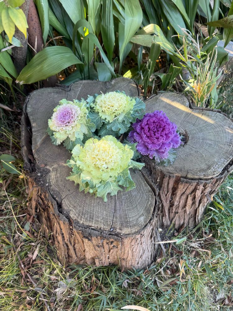 切り株に葉牡丹が😊