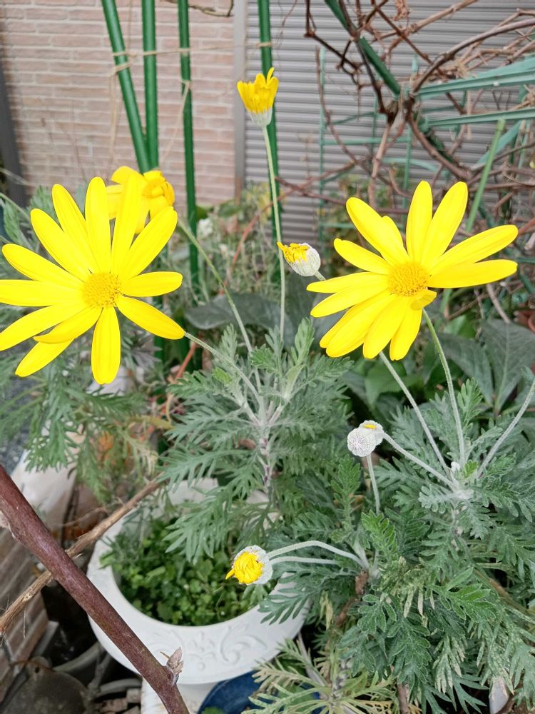過去のpicを観ていたら、ユリオプスデージーは4月5月12月1月と咲いているようです…今年の冬は気温が低くても、乾燥が激しく冬なのに鉢植えの植物の土は、直ぐにカラカラしています、2日に1回位水撒きしてて、冬なのに大変です〜人間も乾燥状態、お肌も気を付けて下さい😊