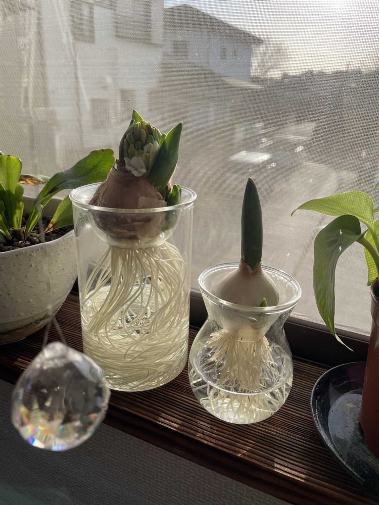 水耕栽培のヒヤシンスって葉が極端に短かったり花の茎も短かったりですが、お花が咲き始めるとだんだんとそれなりに🪻出て来たような気がします🥰