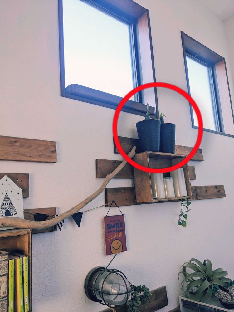 寒くなる頃にウチの中二階にある私のワークスペースの壁面に避難させた2株が起きたようだ!