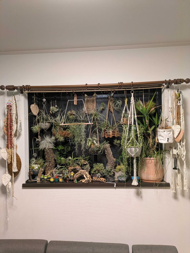リビングのインテリアとして、狭い出窓辺緑化はチランジア最適なんてしながら育てられています。原酒が好きです。(原種)しかーし、自然交配種はいたりします。106株、チランジア100種、その他鉢植え6種です。(20240926) リビングで自然光と風(サーキュレーター)でやっています。