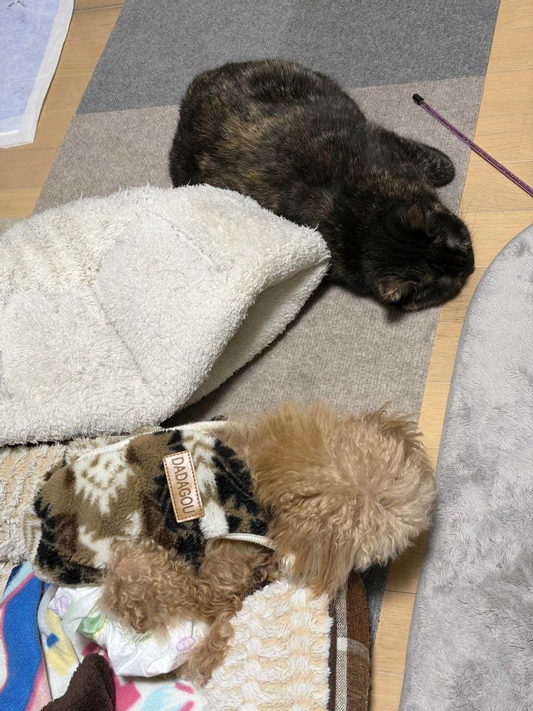 おこちゃんとランちゃん、一緒に寝てるのが可愛くて写真撮ってん😊