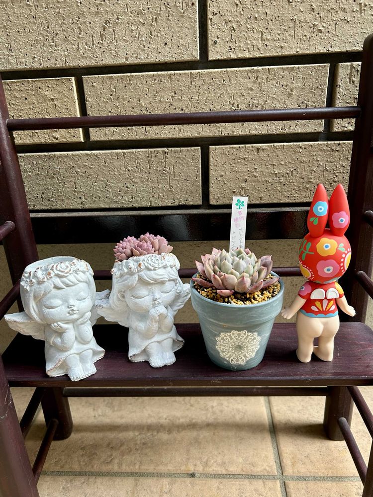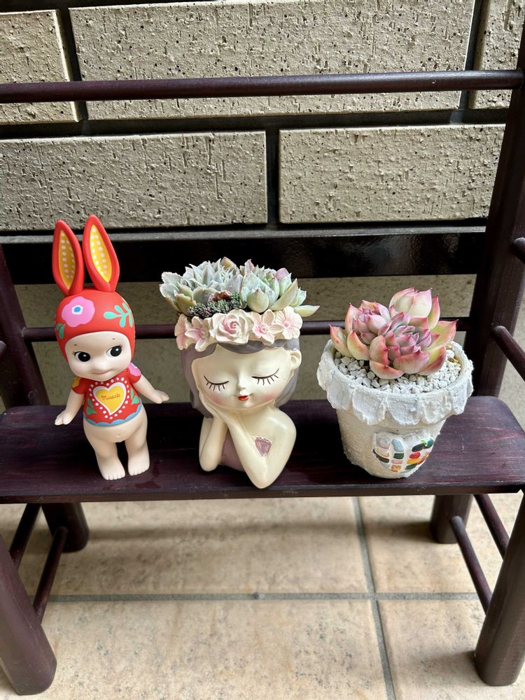 ②うさ耳ソニエンくんと女の子の鉢の寄植え