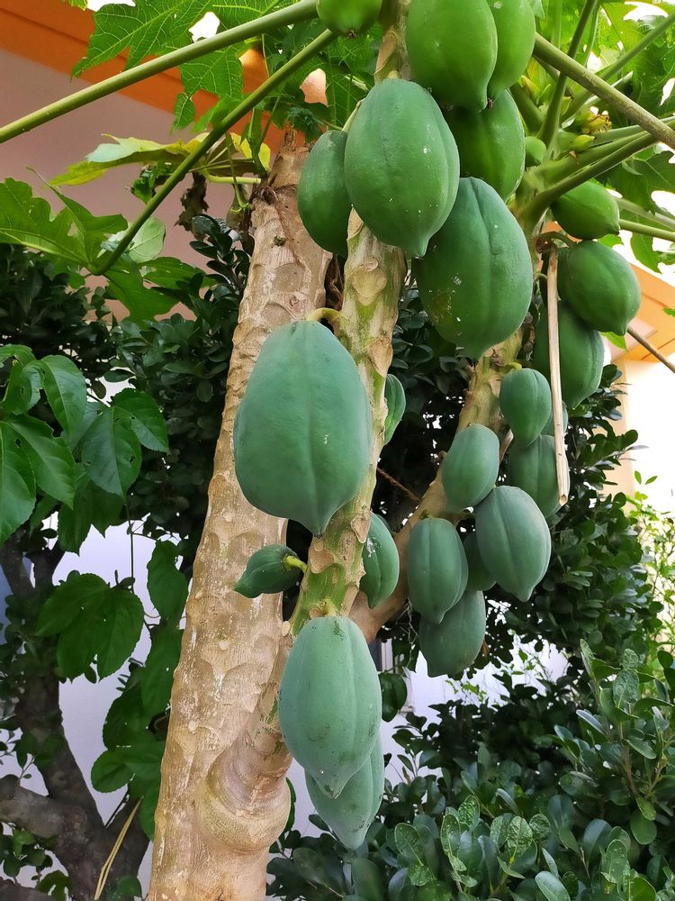 パパイヤ 昨年植えて育ててますが、秋風が吹く頃に ヤット花が咲き始めたので 実は親指位しか成りませんでした😂