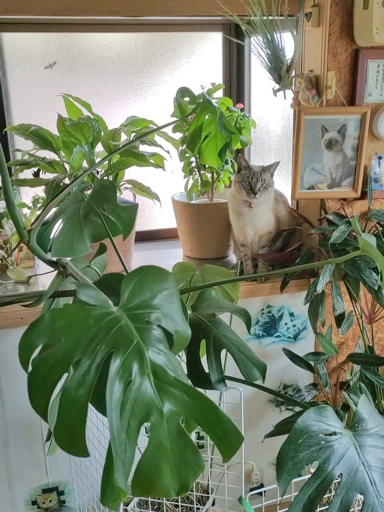 シロ。さん毎回モンステラにチョッカイ出してる…( ;∀;)