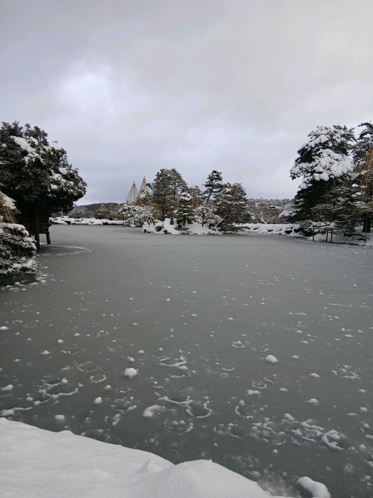 ⑤池の中央まで雪玉を飛ばしたようです😆