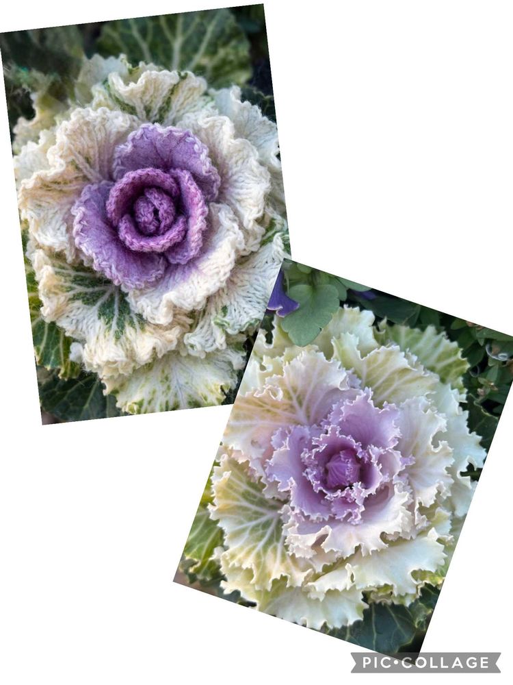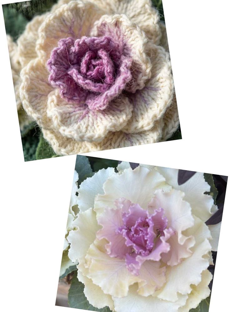 寄せ植えに使ったハボタンを毛糸アート🧶にしました。