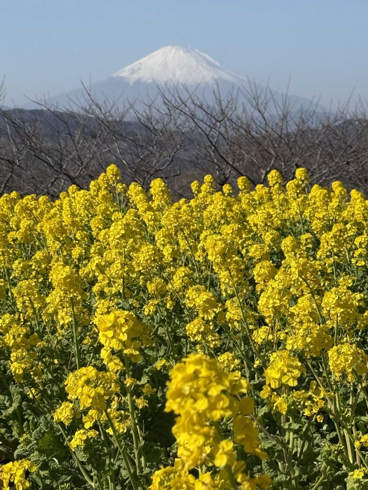 300段の階段のその先に、椿やツツジ、スイセン、そして富士山🗻とコラボする菜の花、春が一足早く訪れていますね🎶