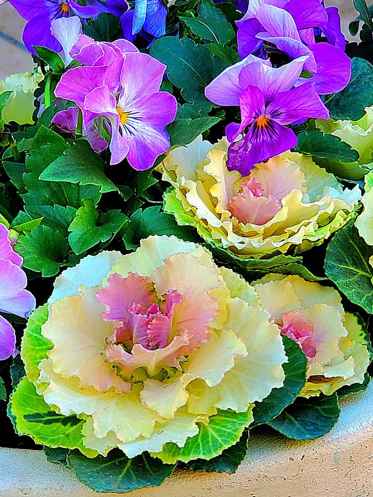 葉牡丹の色合いも素敵