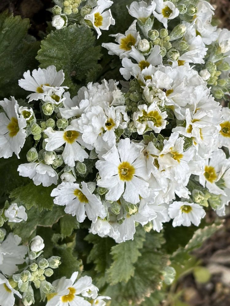 白のプリムラ マラコイデスもピンク同様に元気モリモリ😄