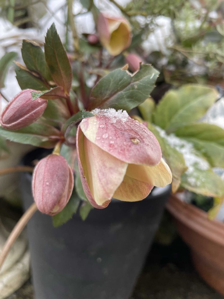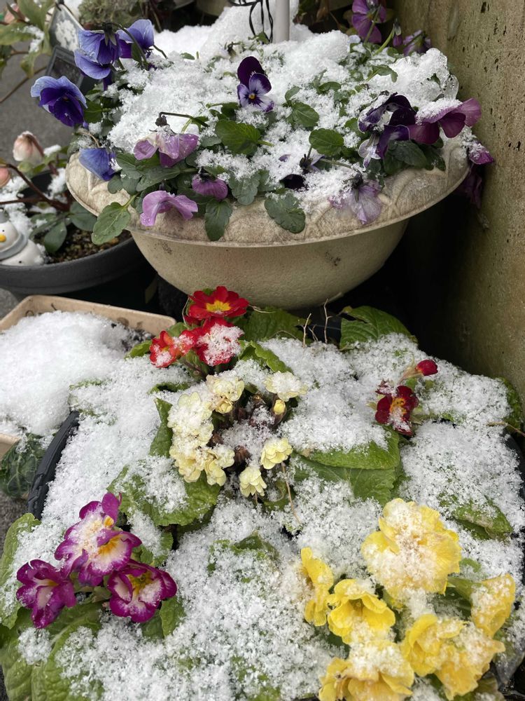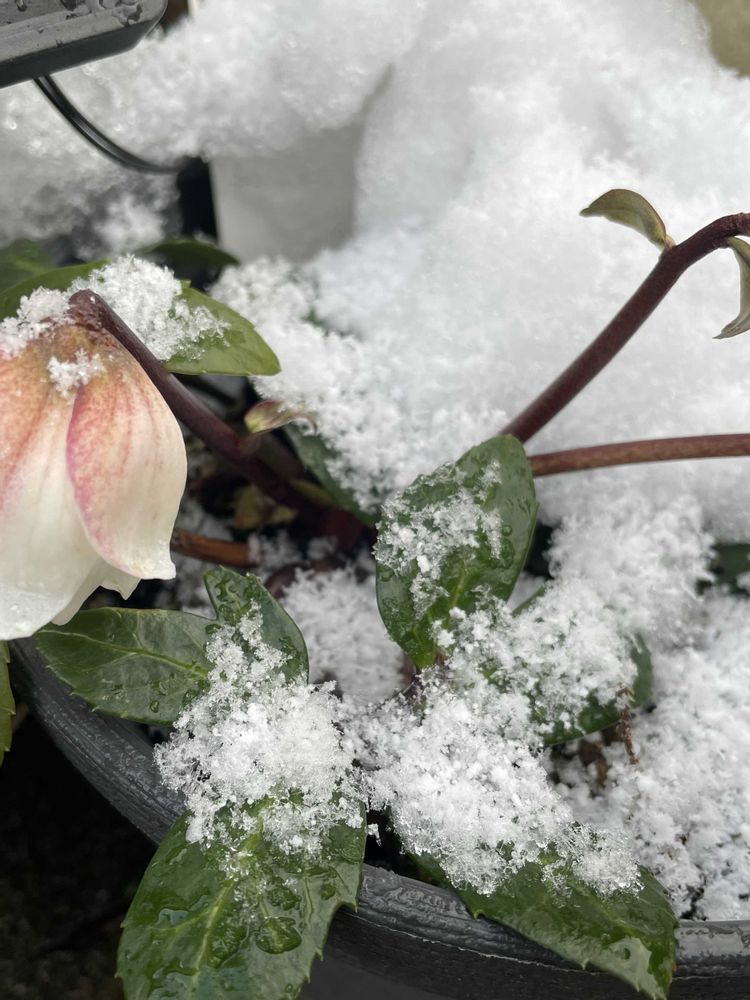 雪をかぶりながらもたくましく咲いているお花たち🥀🌼🌸