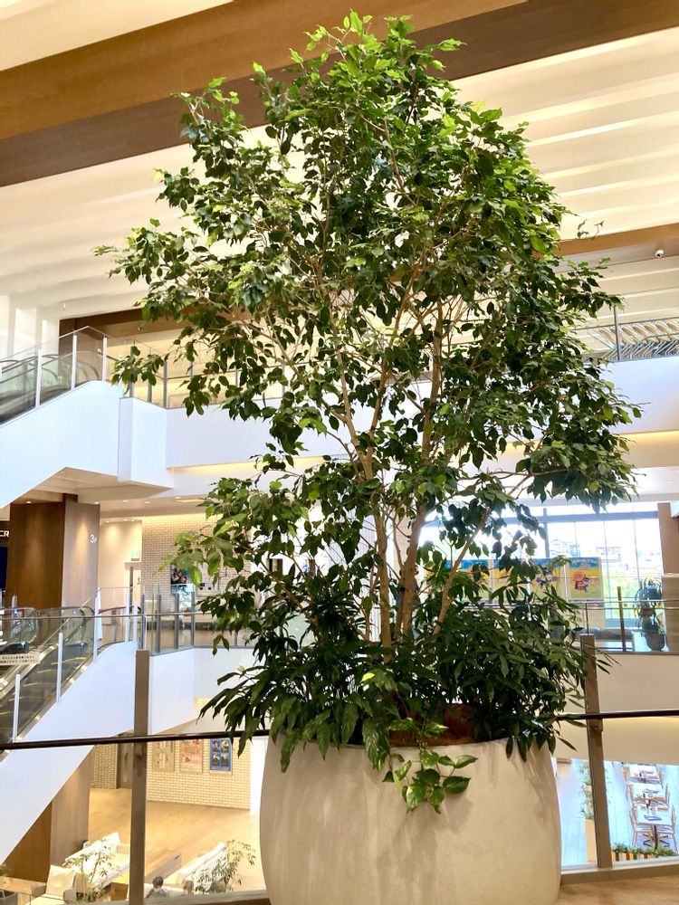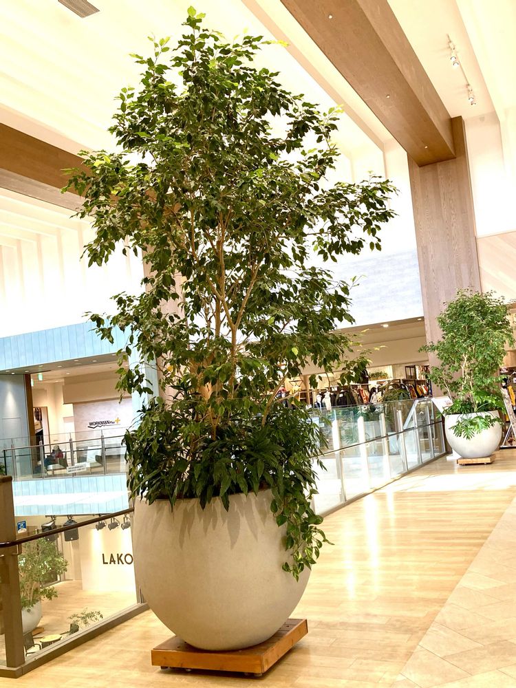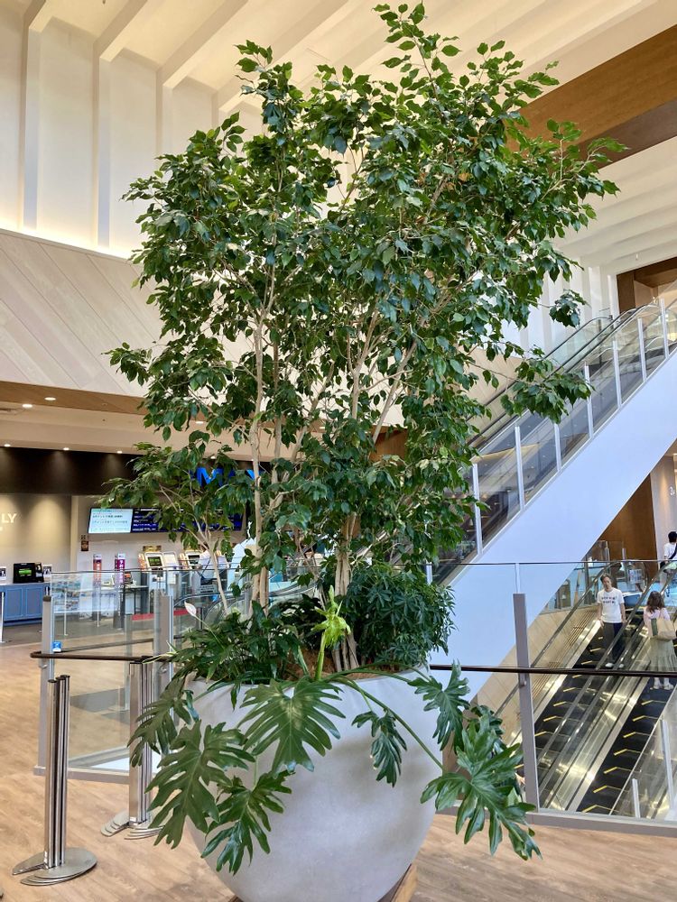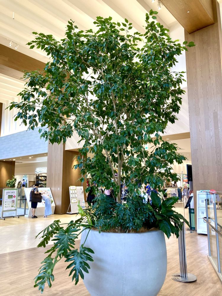 ショッピングセンターの至る所に飾られている大鉢植えの観葉植物たち。