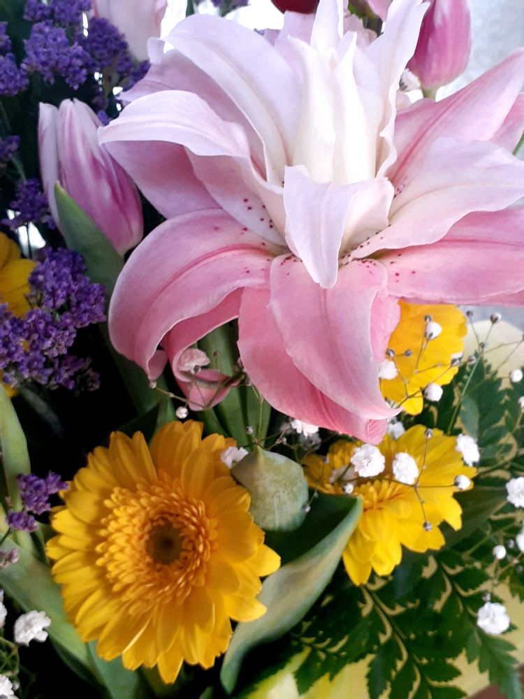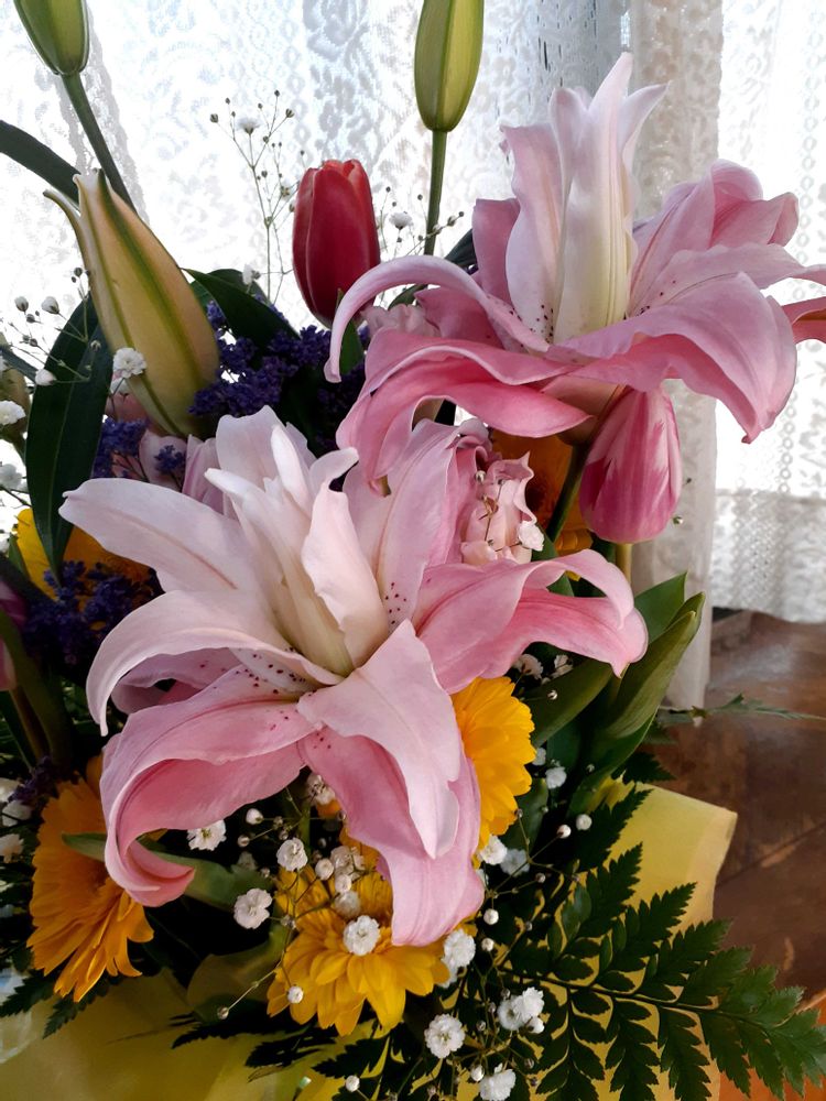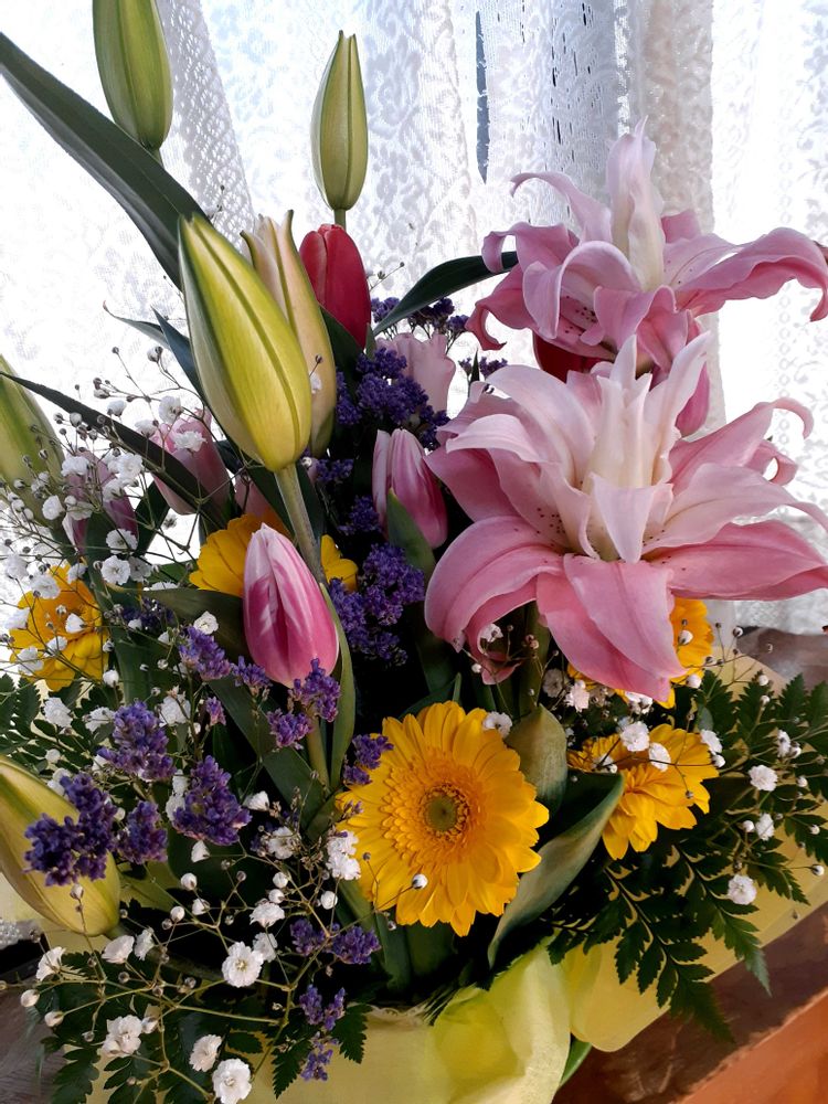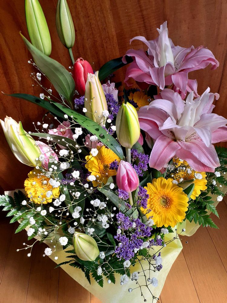 華やかな花束ですね•*¨*•.¸¸💐💕