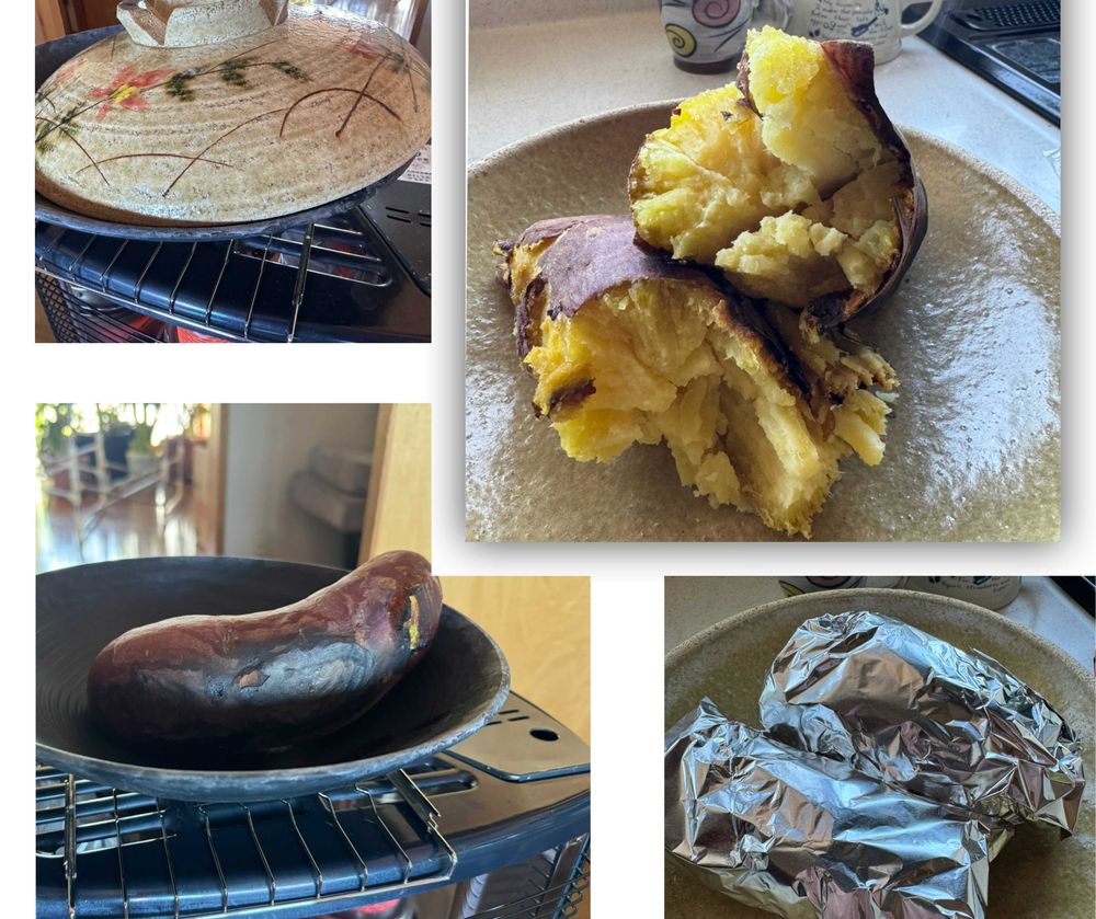 使っていなかった器、鍋兼用の陶器があるのを思い出し、ストーブの上で焼き芋に挑戦しました!