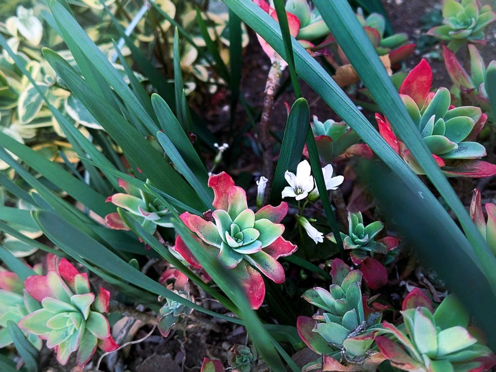 きれいに紅葉している、地植えの多肉植物を見つけました。